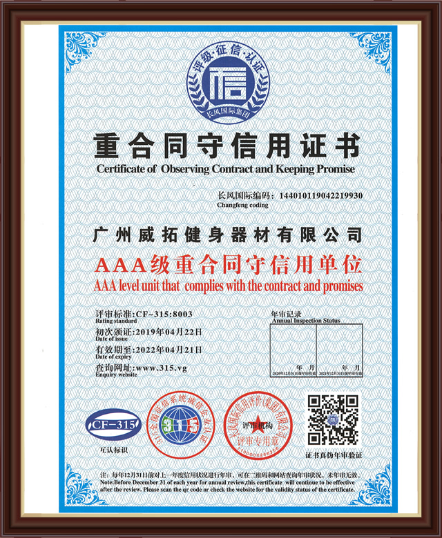 重合同守信用證書